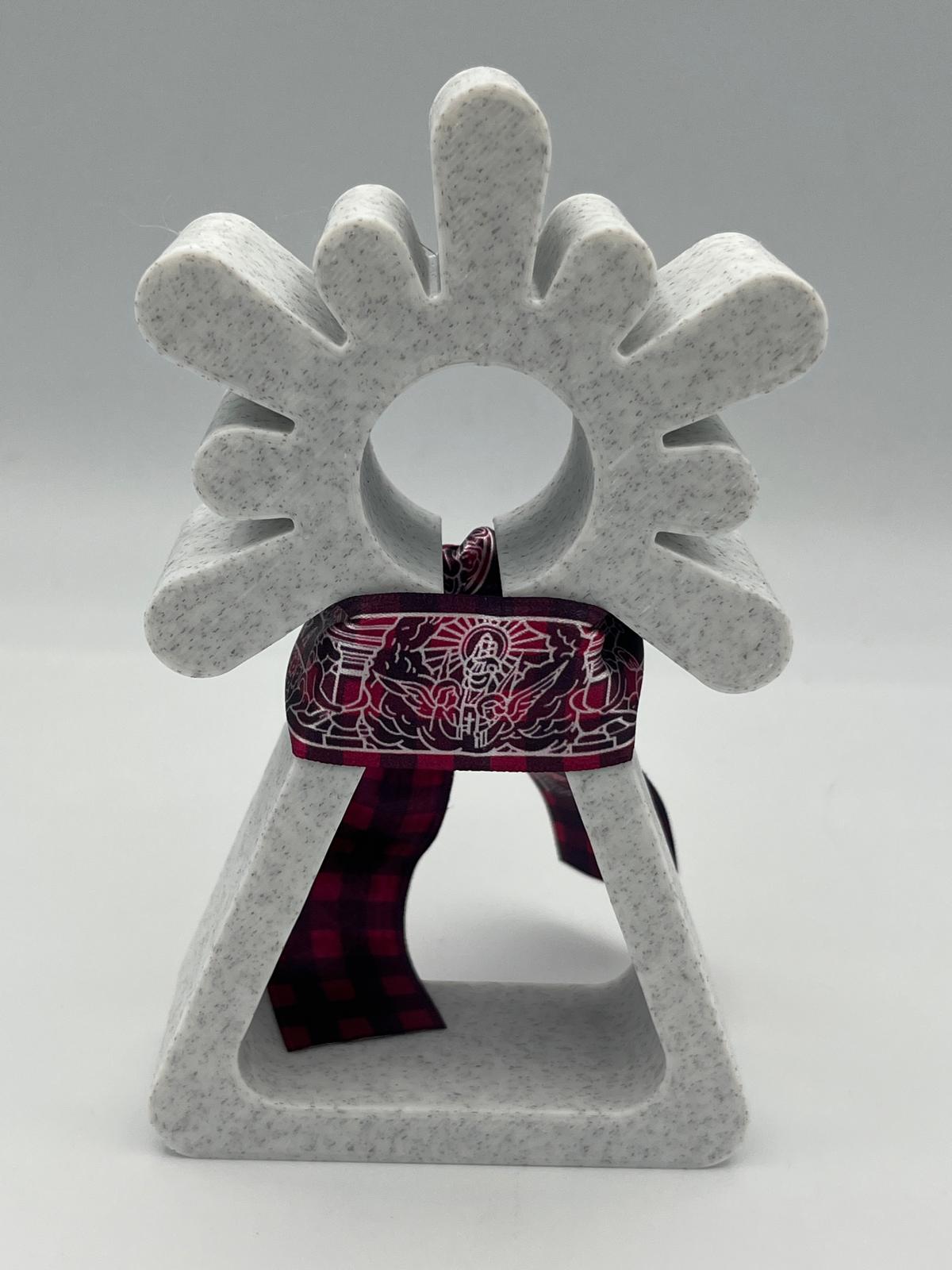 Con un diseño minimalista en acabado efecto mármol, con la posibilidad de añadir el detalle de la medida de la Virgen del Pilar, cinta decorativa que realza su elegancia, esta pieza es perfecta para regalar en ocasiones especiales (bautizos, comuniones, bodas, confirmaciones) o para colocar en el hogar como signo de fe y protección.